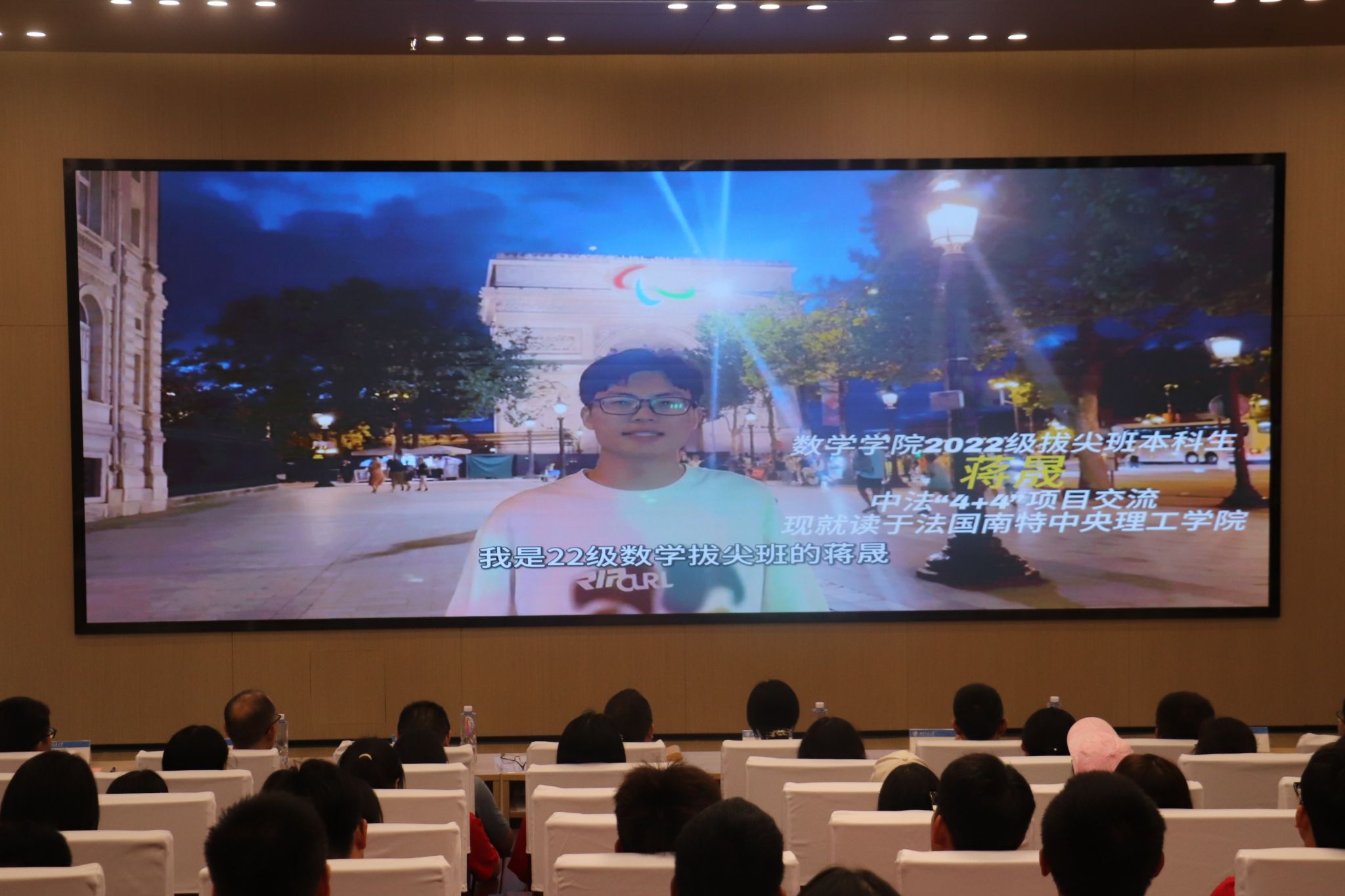 议程第六项,高年级学生代表赵彦通发言。赵彦通分享了自己在网飞猫 的成长历程与学习感悟,他鼓励同学们做一个博闻强志、志存高远的数学人,学会寻求帮助,在协同进步中发现数学之美,并坚持锻炼,拥有健康的身体,面对挫折抛却杂念,面对选择坚定信念,以实际行动书写人生华章。